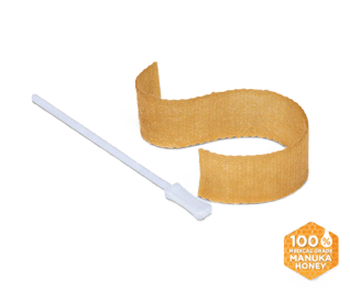 Cette mèche stérile et antimicrobienne est composée de miel de Manuka médical et de fibres matricielles d’alginate.